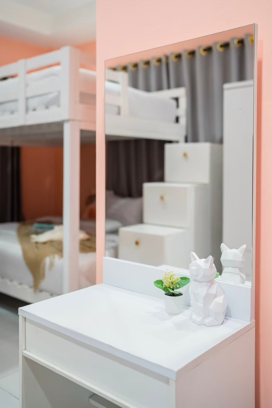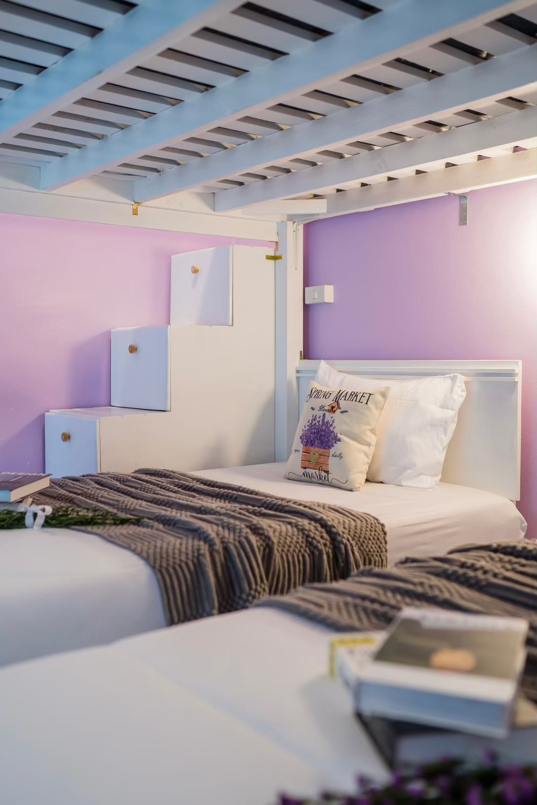 • ห้องที่ 1 : เตียงสองชั้นขนาด 6 ฟุต 1 เตียง / เตียงขนาด 3.5 ฟุต 2 เตียง (ห้องน้ำในตัว)