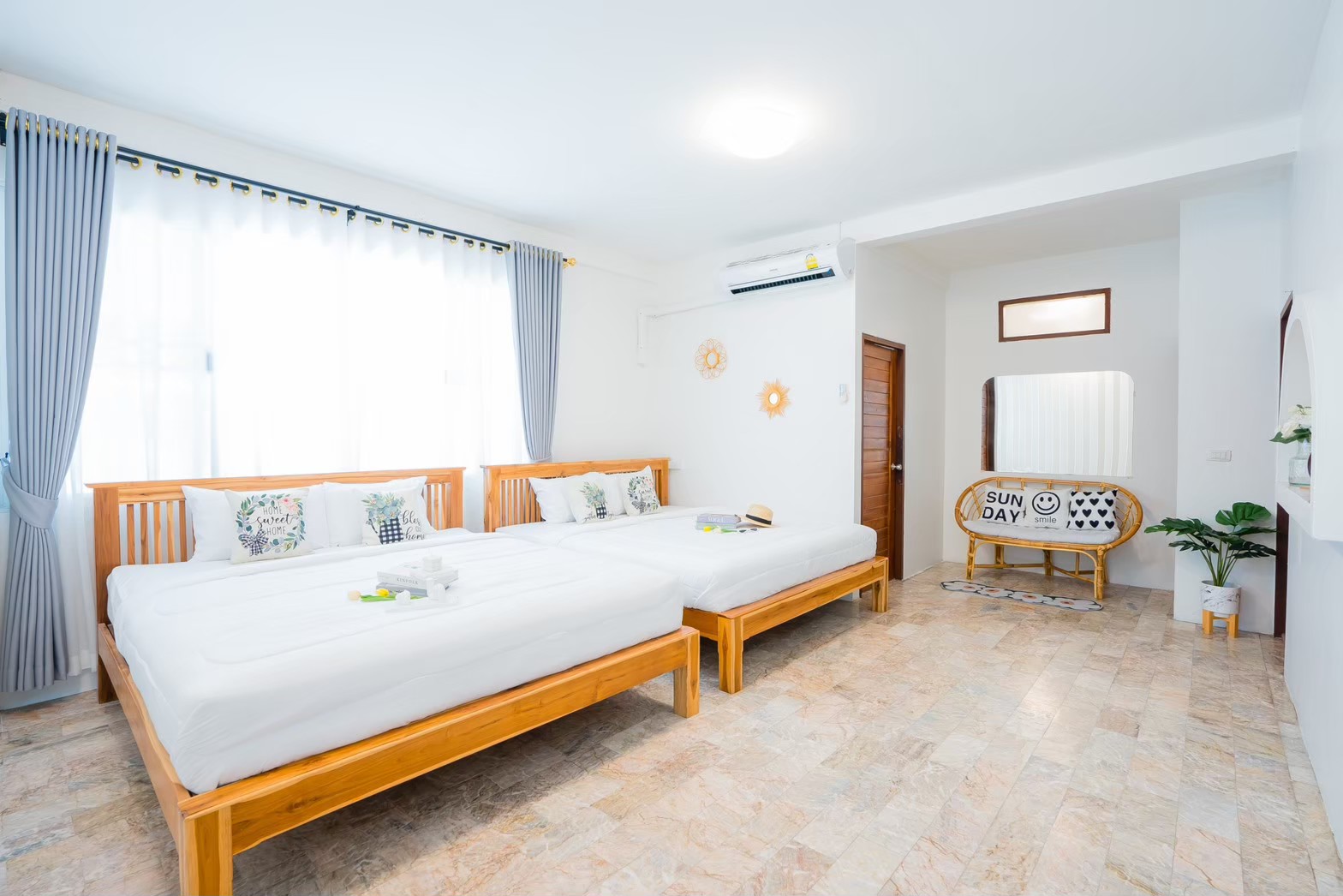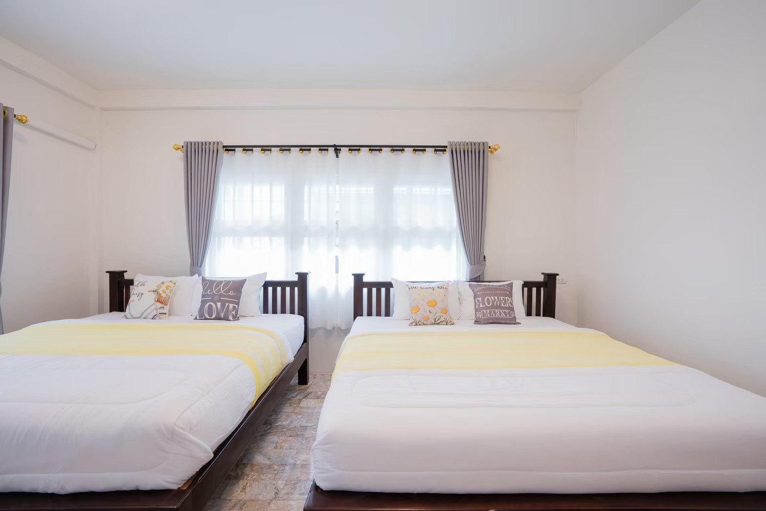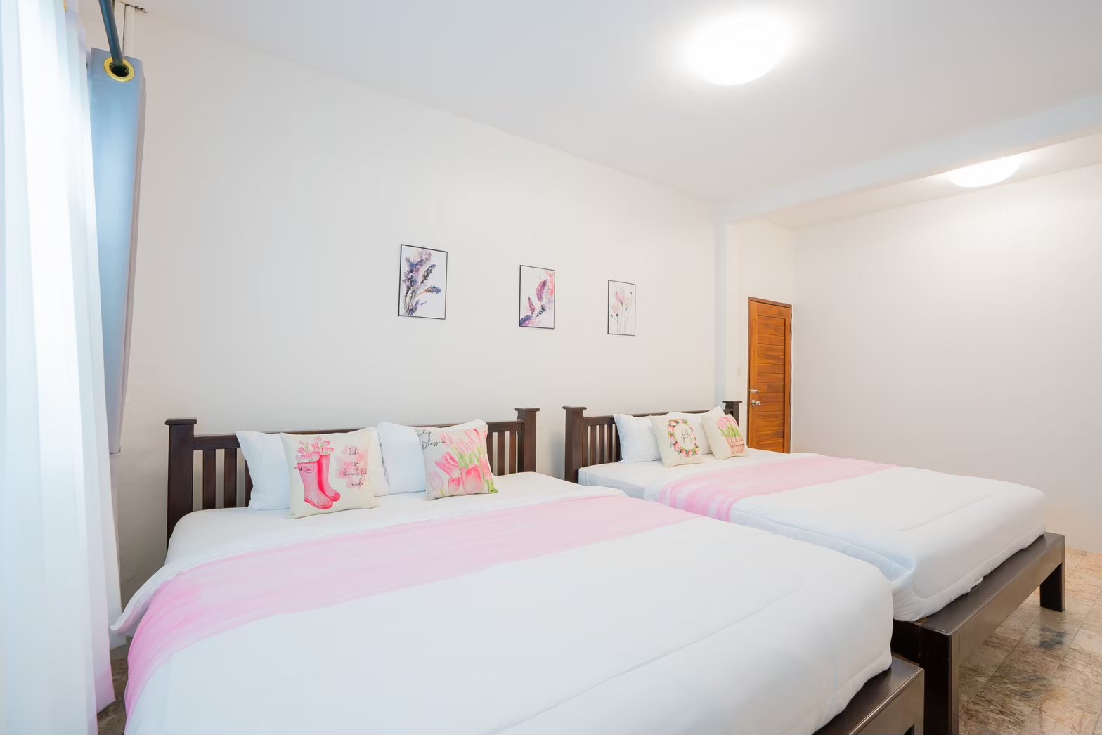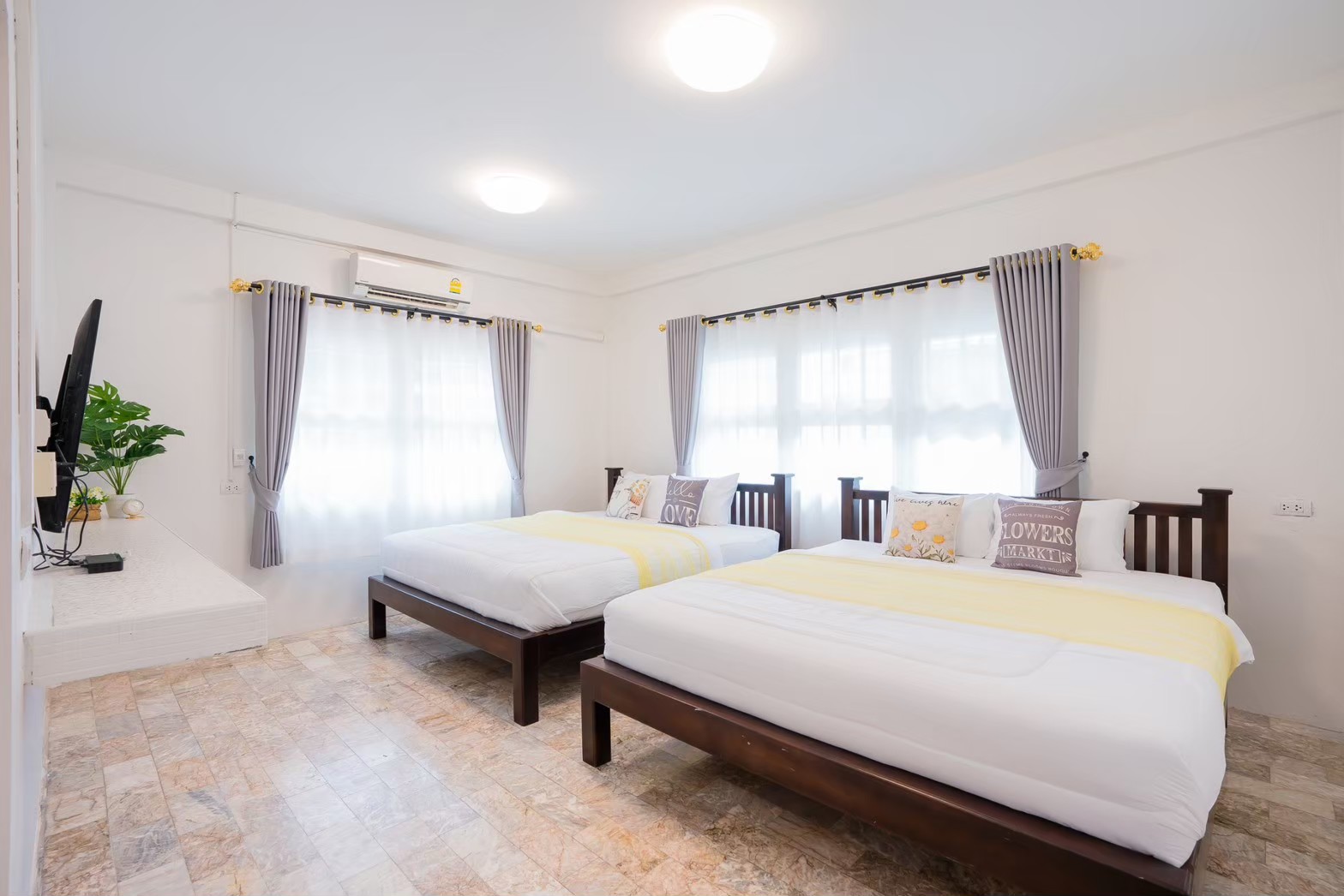• ห้องที่ 3 : เตียง 6 ฟุต 2 เตียง เตียงเสริมขนาดใหญ่ (ห้องน้ำในตัว)