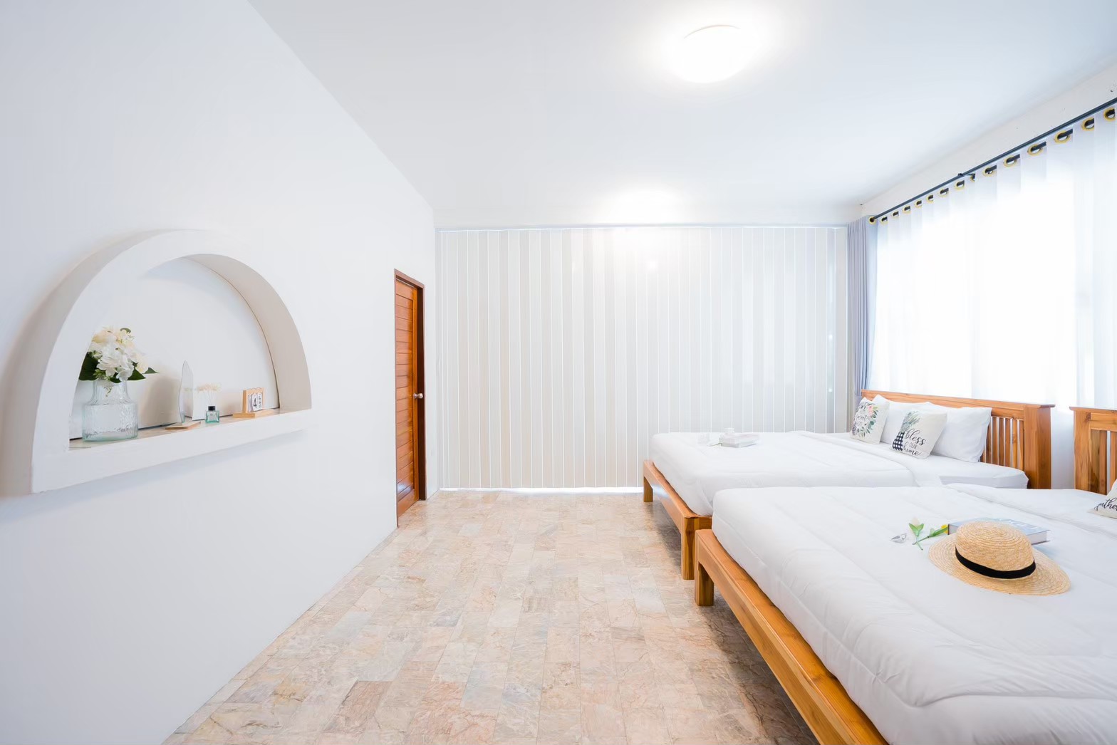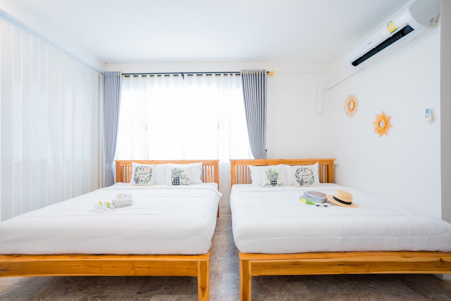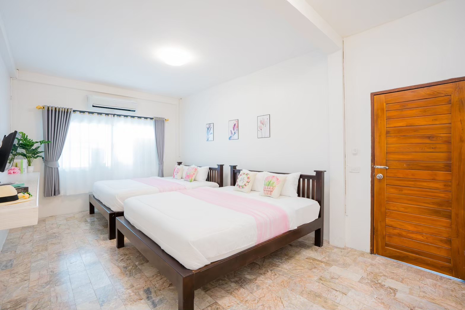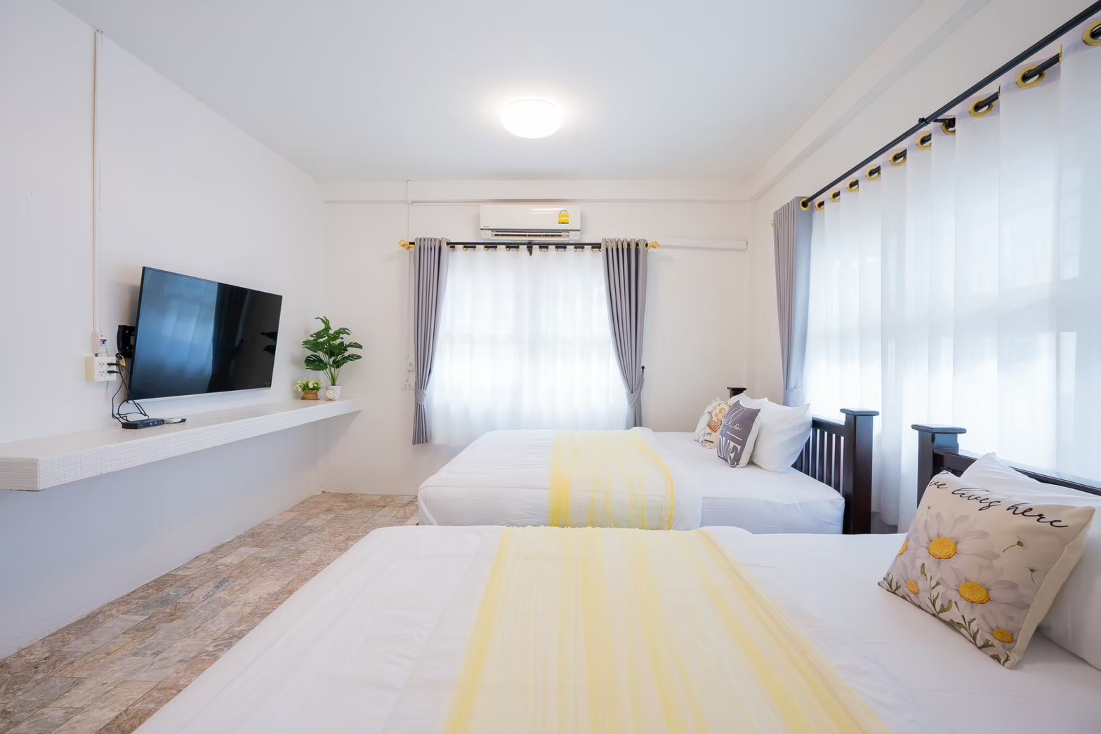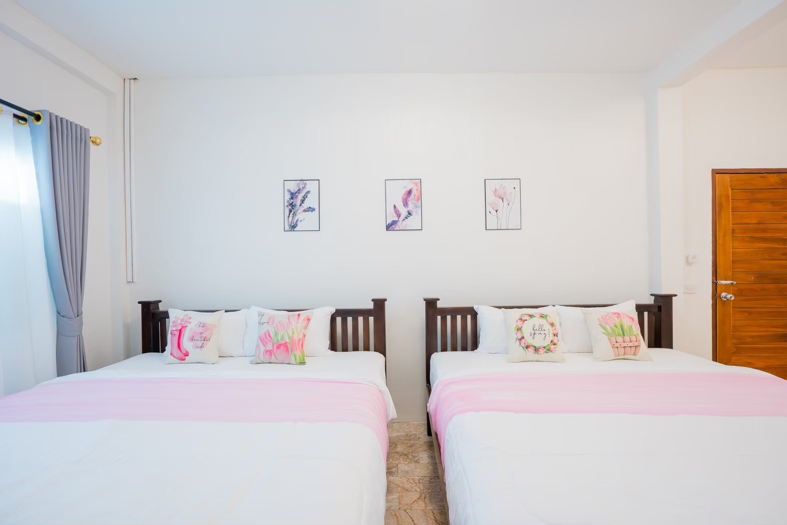• ห้องที่ 3 : เตียง 6 ฟุต 2 เตียง เตียงเสริมขนาดใหญ่ (ห้องน้ำในตัว)
