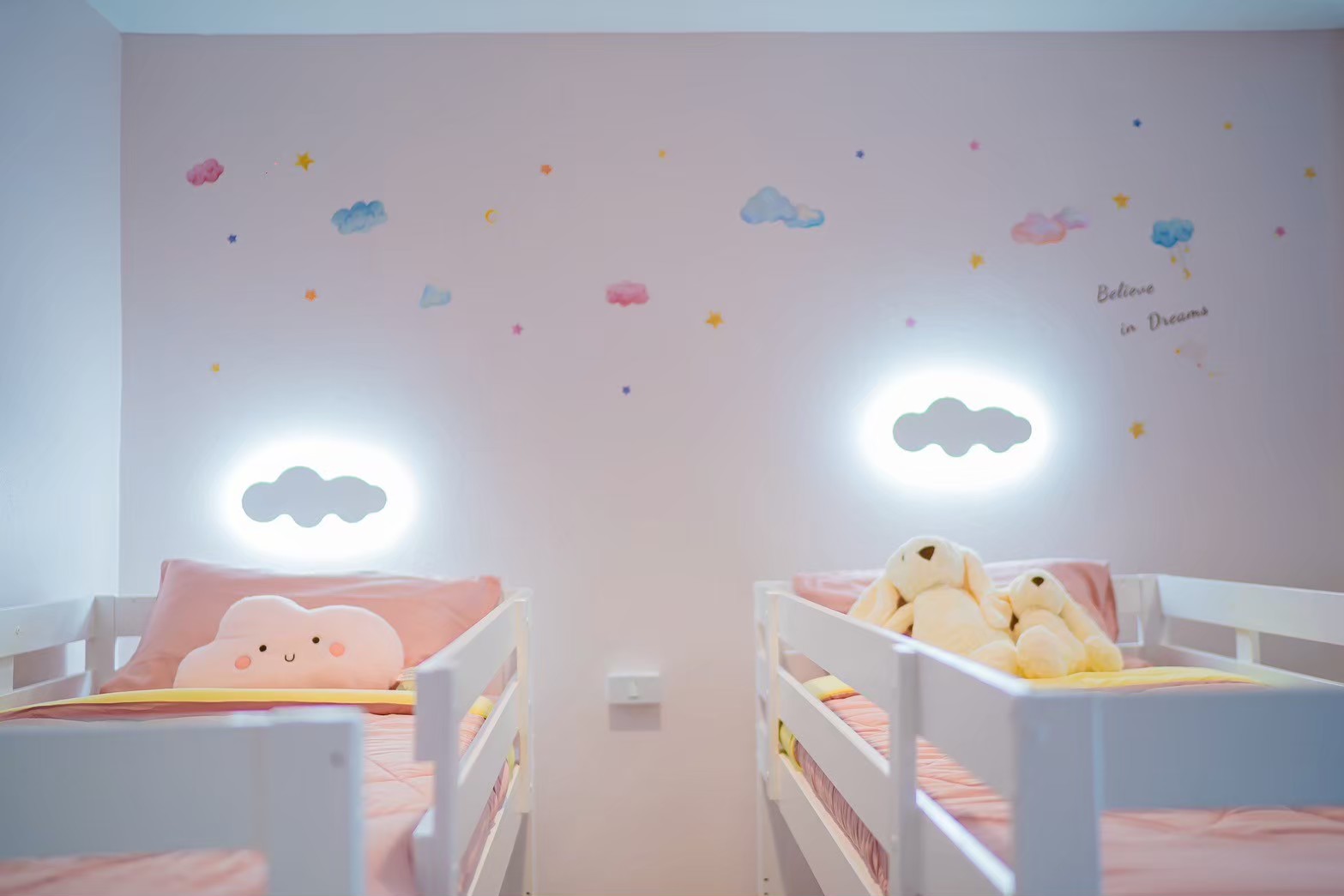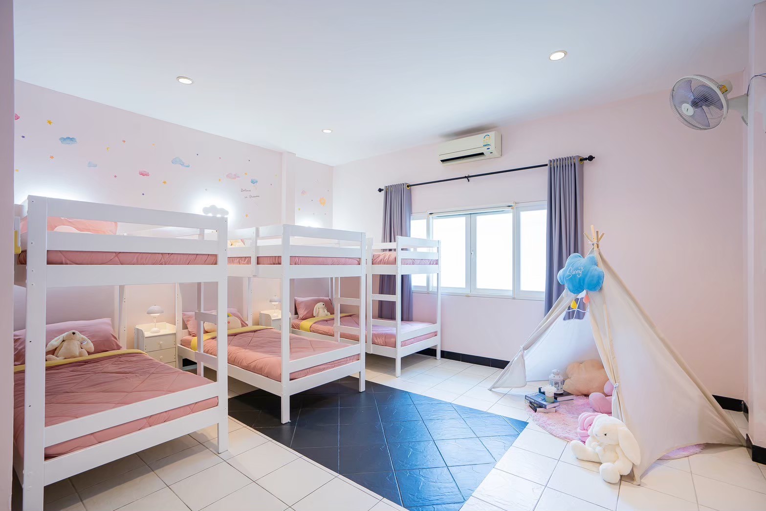 – ห้องที่ 3 : เตียง 6 ฟุต 2 เตียง และเตียง 3.5 ฟุต 2 เตียง (มีห้องน้ำในตัว)
