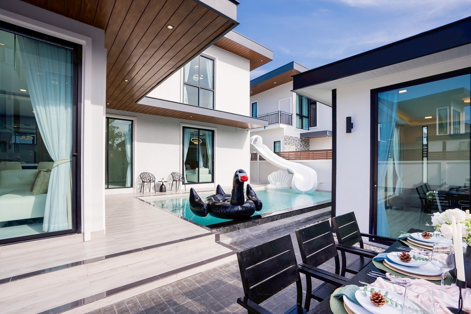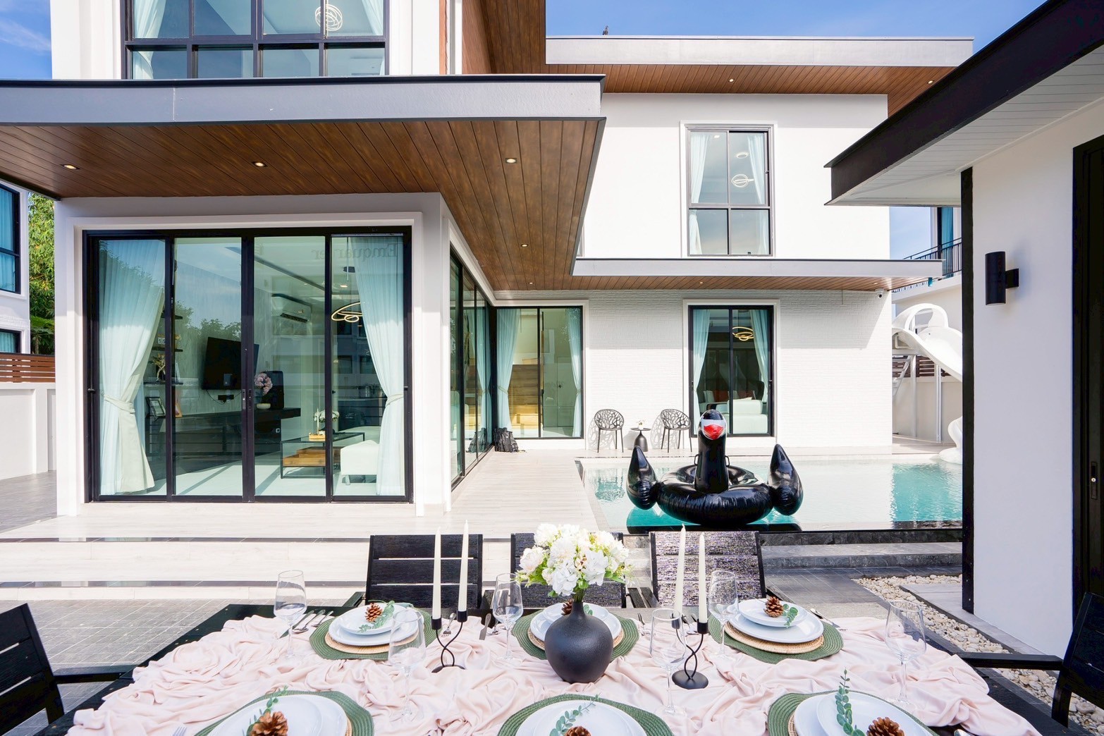 พูลวิลล่าสไตล์โมเดิร์น พร้อมดีไซน์สุดเรียบหรู พื้นที่กว้างขวาง มีสระว่ายน้ำส่วนตัว