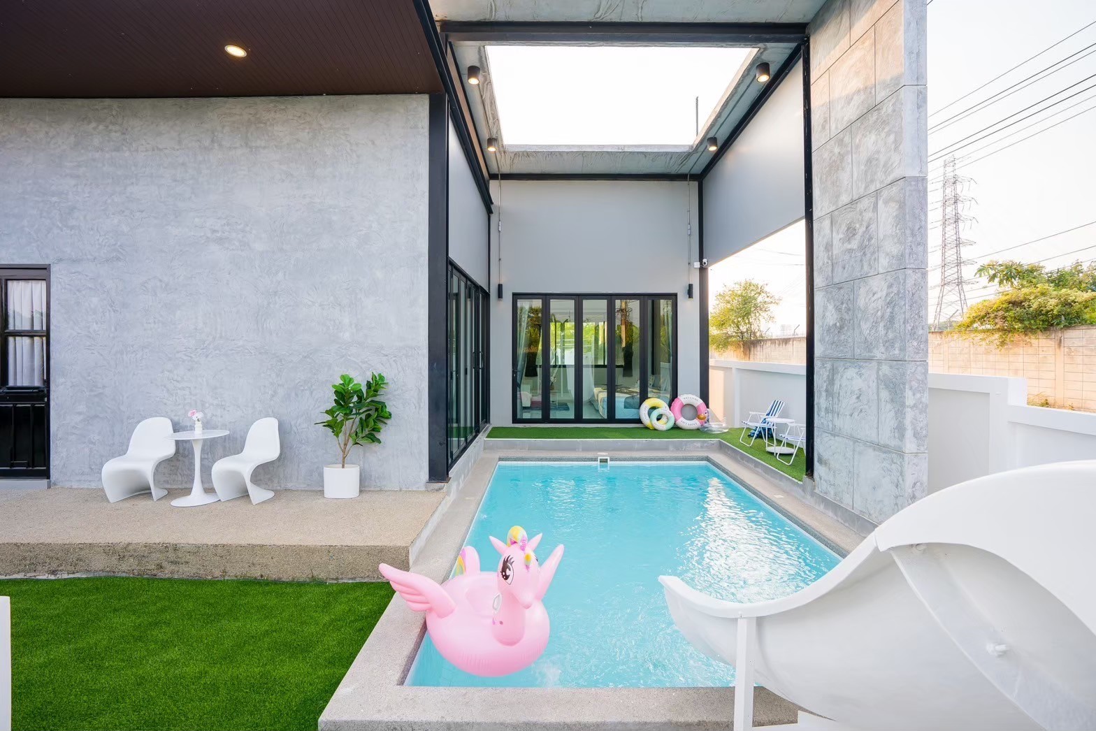 ✅ สระว่ายน้ำส่วนตัวขนาด 4×8 เมตร (สระระบบคลอรีน)