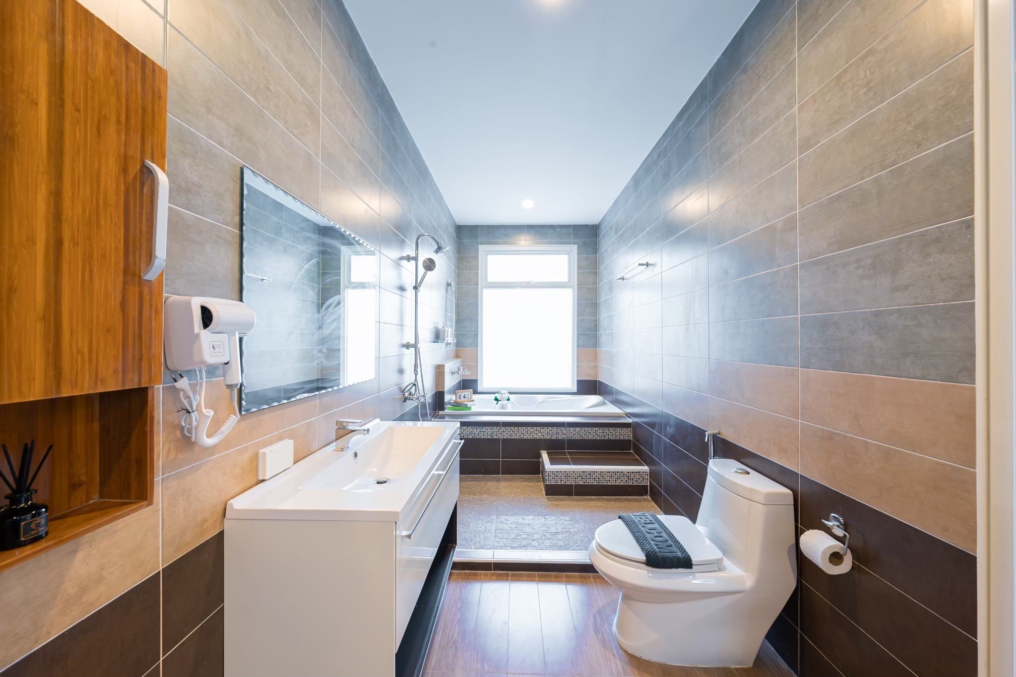 • ห้องที่ 1 : ชั้นล่าง เตียง 5 ฟุต 2 เตียง (ห้องน้ำในตัว + อ่างอาบน้ำ)
